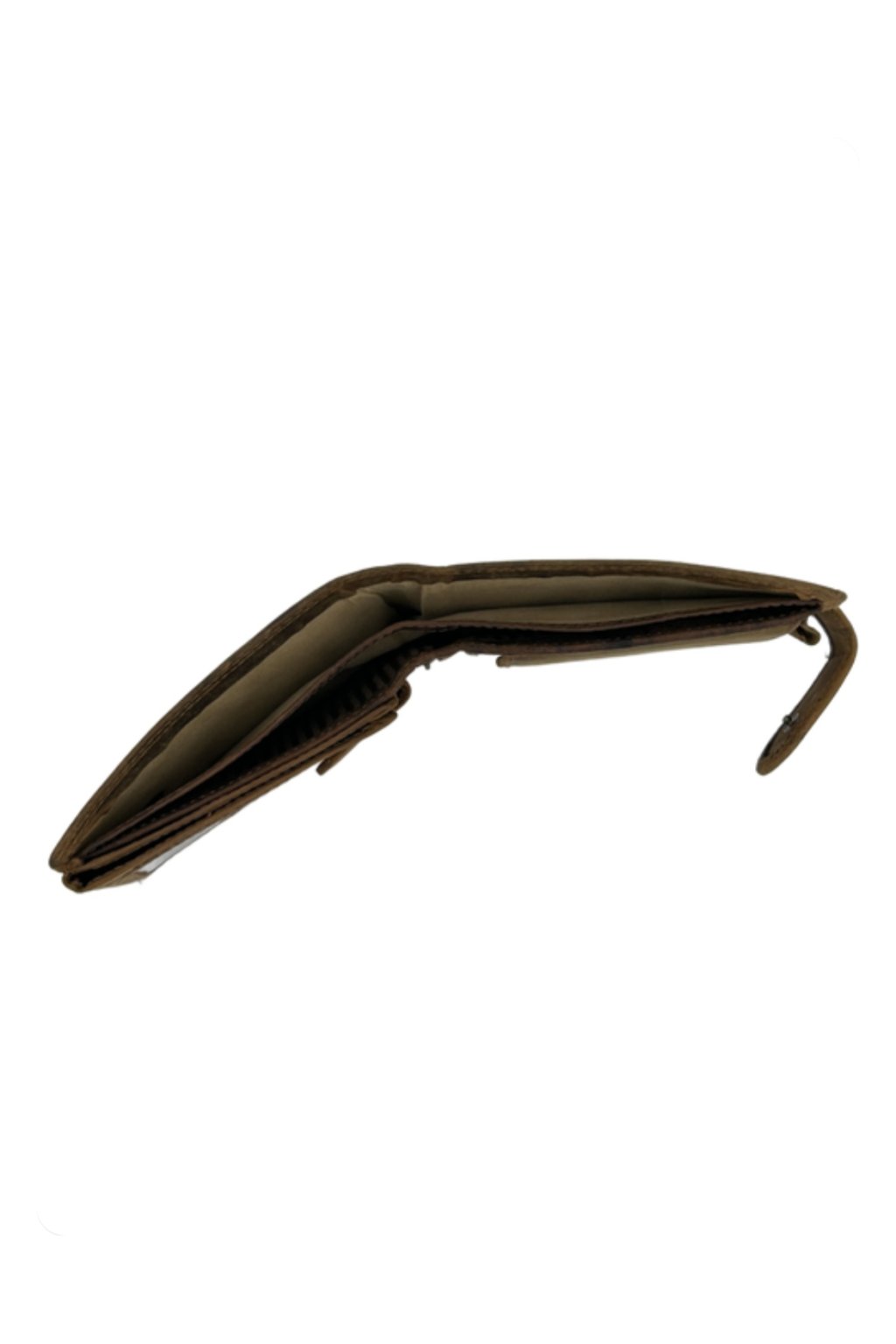 Kožená pánská  peněženka značky Wild hnědé barvy s motivem býka. Nabízí prostor pro praktické uložení hotovosti, karet i dalších nezbytností.
