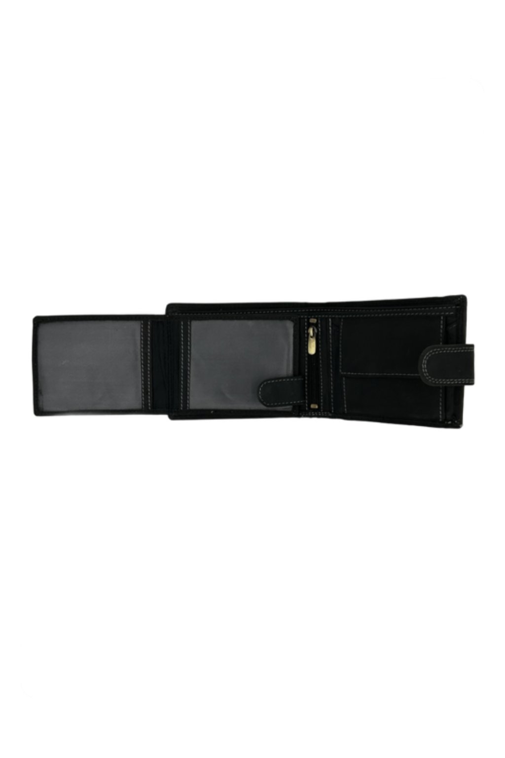 Peněženka se zapínáním na přezku se cvokem je vyrobená z broušené hovězí kůže, která Vám zajistí větší odolnost a delší výdrž než ostatní materiály. Peněženka je dvakrát prošitá. Po otevření je v přední části přístupný mincovník s klopou na cvok a prostor na uložení karet a dokladů s vnitřní přezkou a cvokem.  Za nimi jsou dvě kapsy na bankovky.