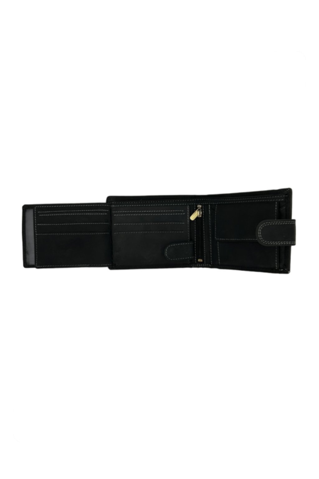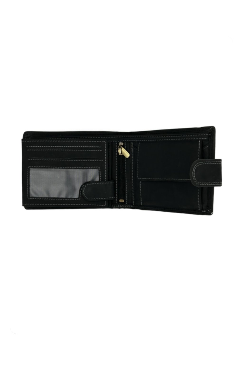 Peněženka se zapínáním na přezku se cvokem je vyrobená z broušené hovězí kůže, která Vám zajistí větší odolnost a delší výdrž než ostatní materiály. Peněženka je dvakrát prošitá. Po otevření je v přední části přístupný mincovník s klopou na cvok a prostor na uložení karet a dokladů s vnitřní přezkou a cvokem.  Za nimi jsou dvě kapsy na bankovky.